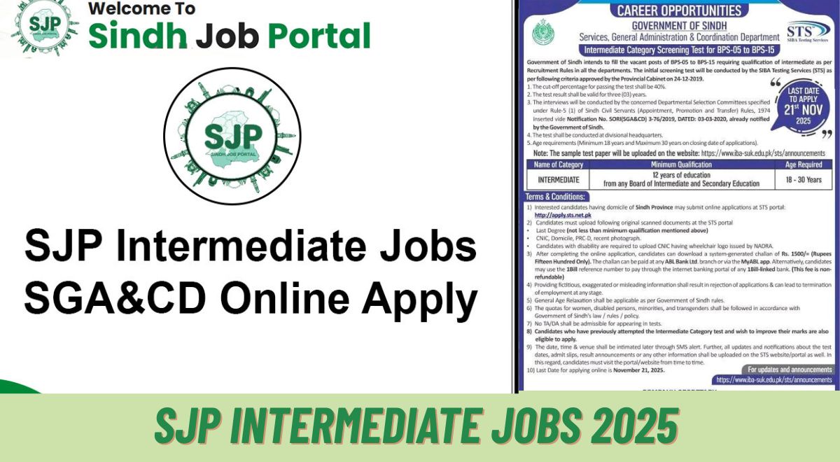 According to the announcement, the Intermediate Category Screening Test will be organized by SIBA Testing Services (STS) to ensure a transparent and merit-based selection process. Interested candidates are advised to apply through the official SJP portal (www.sjp.gos.pk) before the last date, December , 2025.